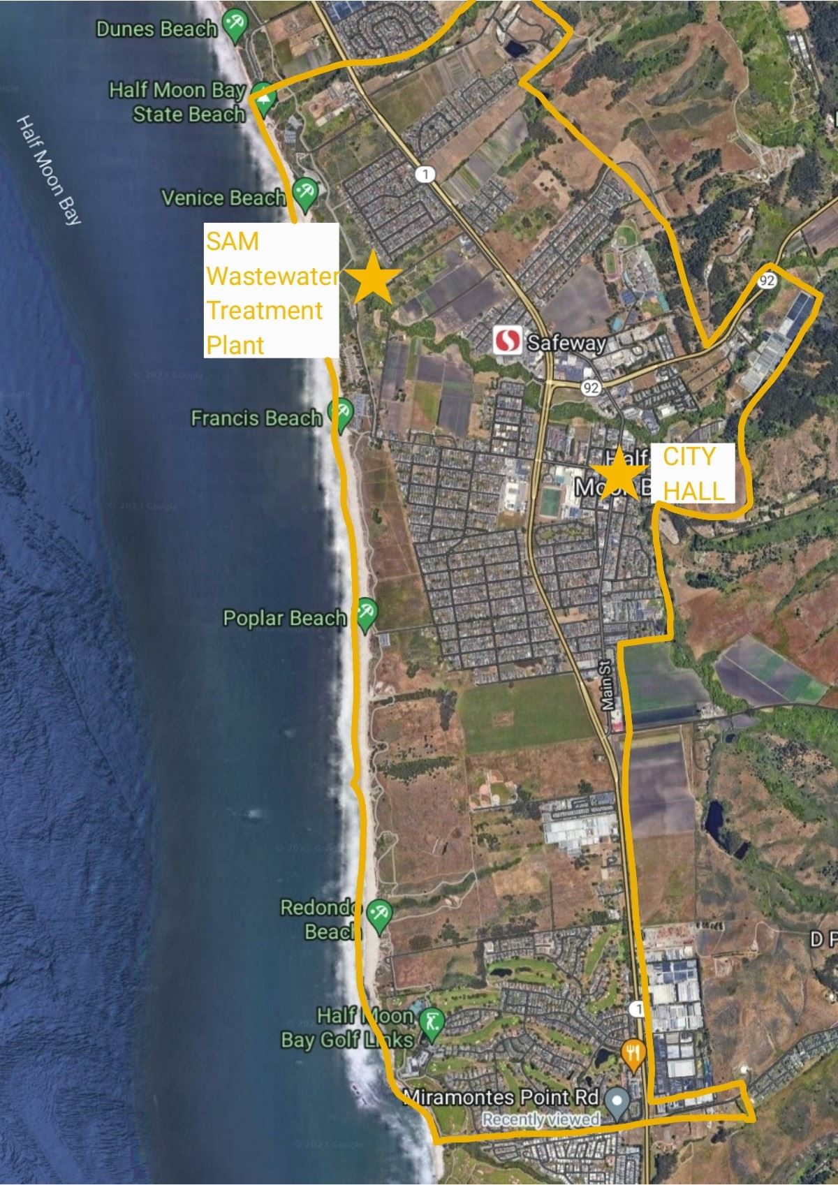 The City of Half Moon Bay provides sewer collection service south of Frenchman’s Creek to Miramontes Point Road. Wastewater from residences, businesses, schools, restaurants and other buildings is conveyed through sewer mains owned by the City of Half Moon Bay to the sewer treatment plant operated by Sewer Authority Mid-Coastside (SAM).